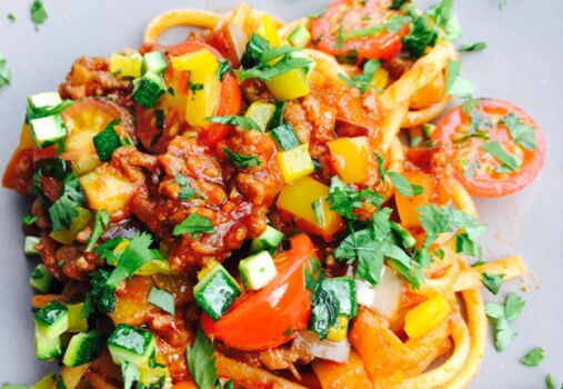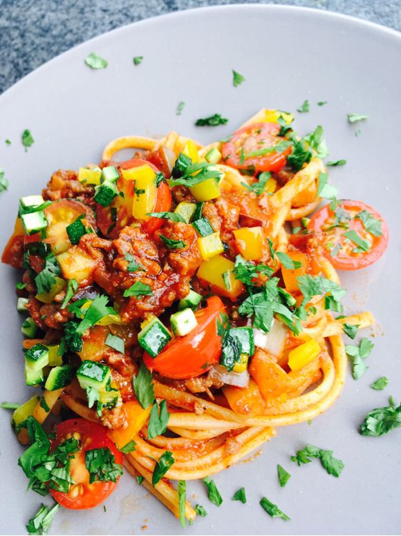 Rindshackfleisch in etwas Öl in einer beschichteten Pfanne gut anbraten. Zwiebeln, Knoblauch und Tomatenpüree zugeben und gut verrühren. Mit Rotwein und Balsamico ablöschen und gut durchschwenken.[nbsp] Die Gemüsewürfel zugeben, verrühren und kurz mitdünsten. Nun Oregano, Pelati und die Rindsbouillon zugeben. Das Ganze bei mittlerer Hitze ca. 30 Minuten leicht kochen lassen und anschliessend mit Salz und Pfeffer abschmecken. In der Zwischenzeit die Tagliatelle in reichlich Salzwasser “al dente“ kochen, abschütten und direkt mit der Sauce vermischen.