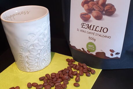 Der Kaffee "EMILILO" ist ein echt starker Kaffee. Vollmundig, kraftvoll, dicht und mit intensiv, kräftigem Aroma mit praktisch keinem Säuregehalt. Die ausgezeichnete Qualität werden Sie sofort nach der ersten Tasse feststellen. Sie werden von dem intensiven und würzigem Geschmack, dem kraftvollem Aroma und dem lang anhaltenden Nachgeschmack begeistert sein.